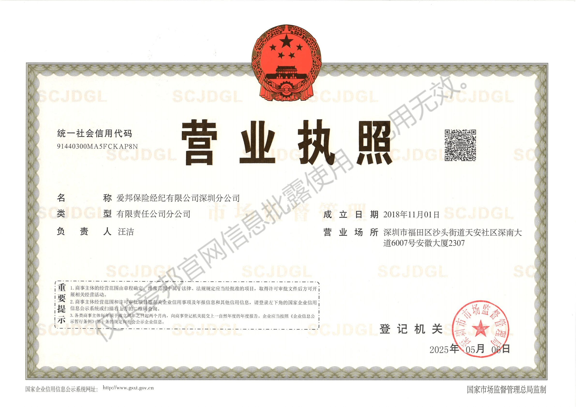 分支机构:爱邦保险经纪有限公司深圳分公司